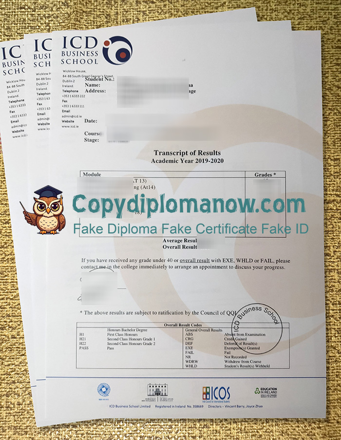 The quick way to Order ICD Business Transcript, ICD Business Transcript of Results, With campuses in both Paris, Lyon and Toulouse, ICD Business School, private institute of higher education, non-profit association, offers undergraduate and graduate programs with a strong international focus. ICD is a non-profit association founded more than 35 years ago which offers degree programs specializing in sales, marketing, and business development. In addition to its Grande École Master’s degree program, which is accredited by the French Ministry of Higher Education and Research and confers the French “Grade de Master”, ICD Business School also offers 3-year Bachelor’s degree programs in the fields of business development and marketing. Buy Technological University Dublin Diploma.