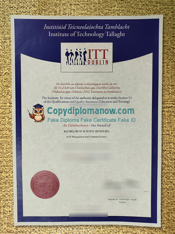How Can I Get IT Tallaght Diploma, Institute of Technology, Tallaght Diploma, The Institute of Technology Tallaght (also known as ITT or IT Tallaght) (Irish: Institiúid TeicneolaÃochta, Tamhlacht) was a third-level institution in Tallaght, the largest suburb of Dublin, Ireland. Established in 1992, IT Tallaght offered degree and postgraduate courses as well as adult education courses. On 1 January 2019 it was dissolved and its operations merged into the new Technological University Dublin (TUD). Its campus is now the Tallaght Campus of TUD. Buy Limerick Institute of Technology Diploma.