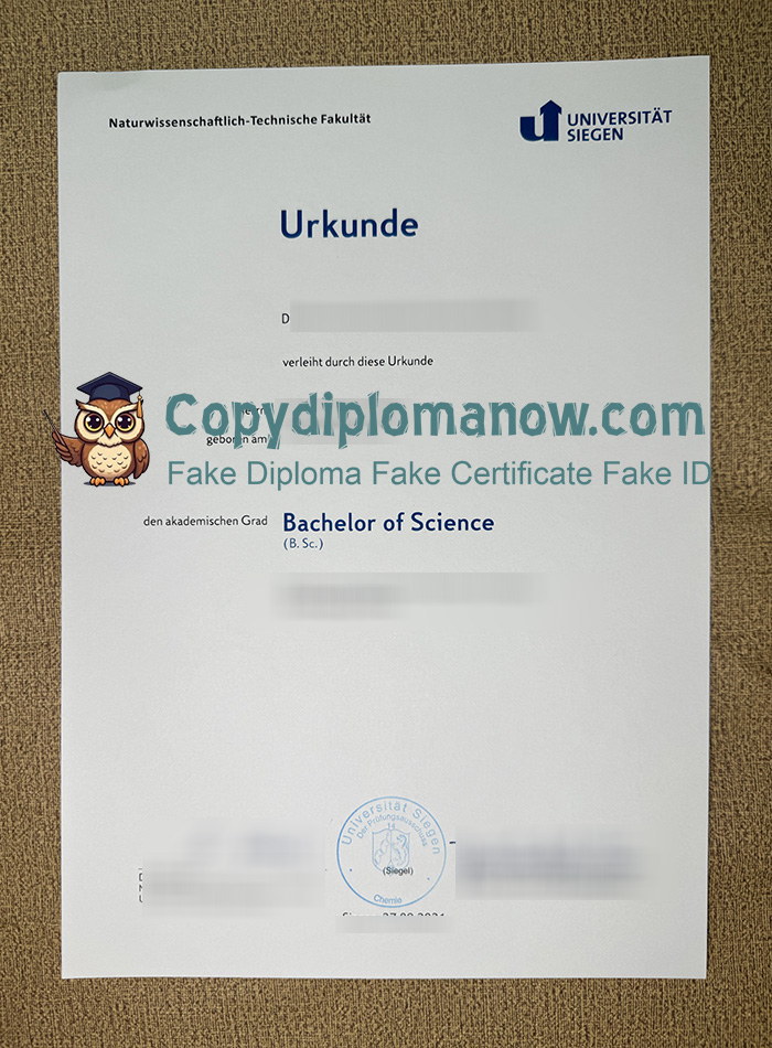Powerful ways for getting a Universität Siegen Urkunde, University of Siegen Diploma, Buy University Bachelor of Science Degree, The University of Siegen was founded in 1972 with the combination of graduate and undergraduate student of around 18,000. They offer various degree programs in four faculties with 144 fields of study. The academic year consist of winter and summer terms just like other German universities.